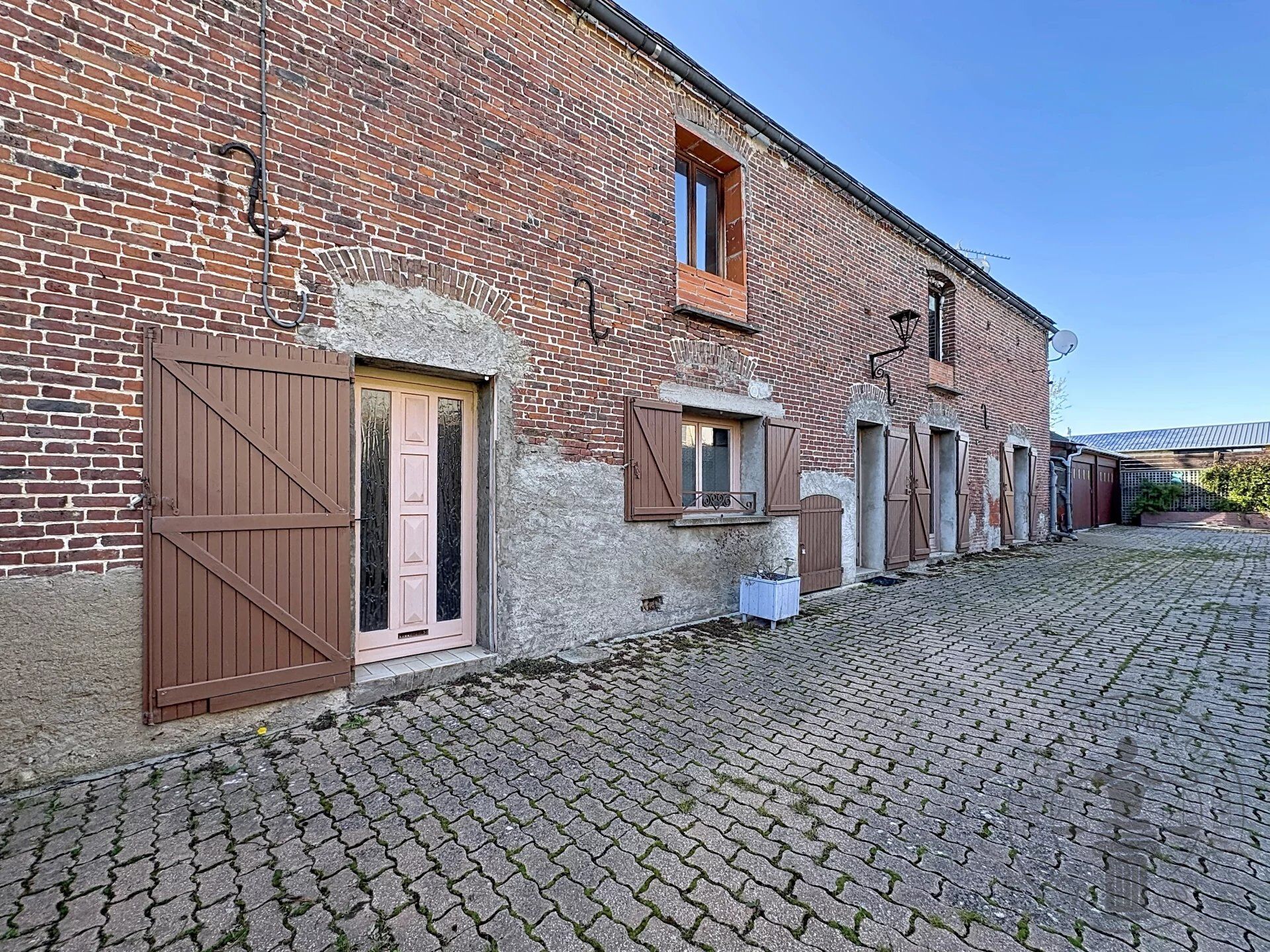 À l’extérieur, la propriété propose un cadre de vie agréable avec une cour pavée et un terrain clos de plus de 500 m², sans vis-à-vis, garantissant tranquillité et intimité. Les nombreuses dépendances, comprenant un double garage, un atelier et une cave, offrent de nombreuses possibilités d’utilisation et de stockage.
