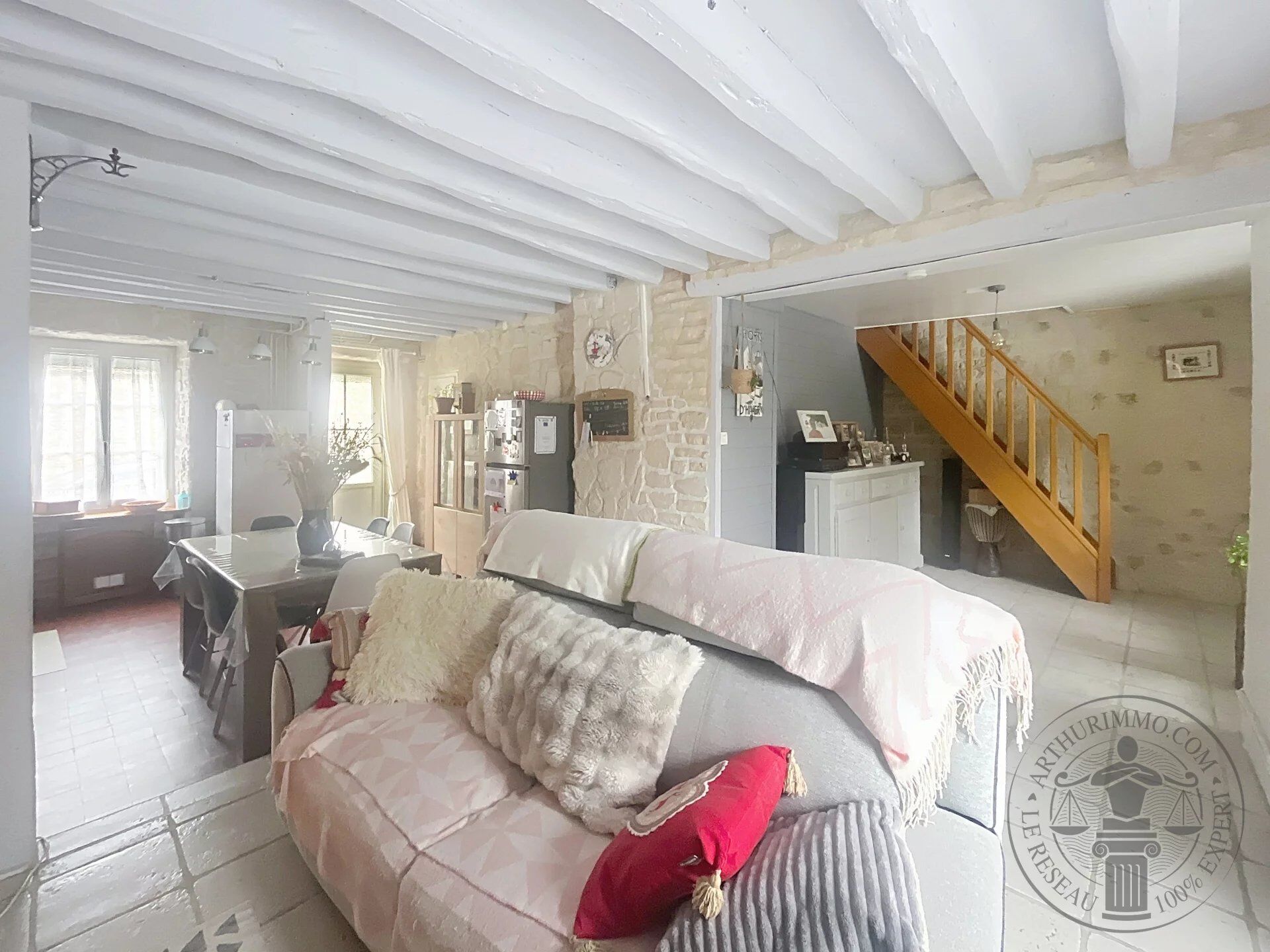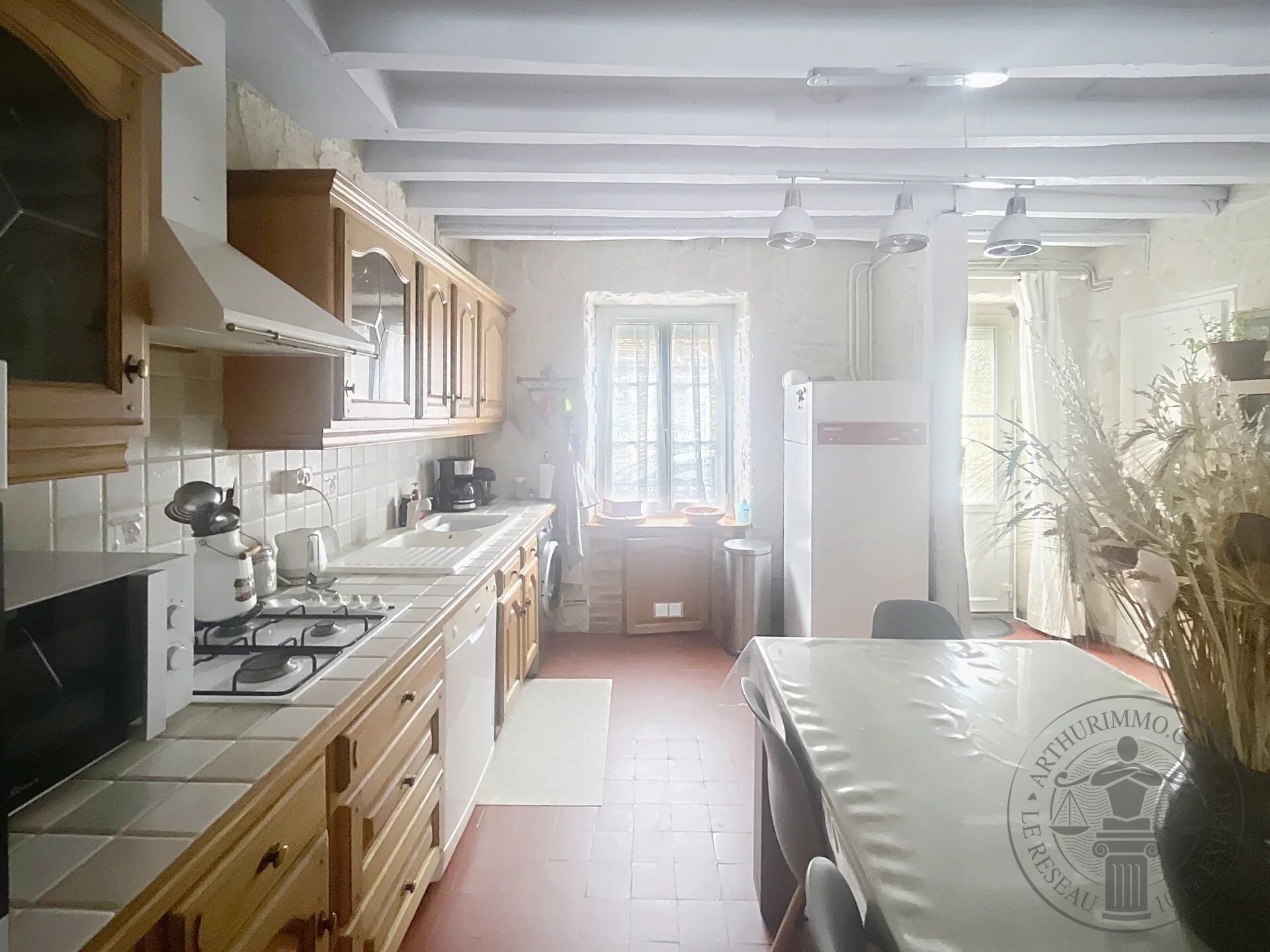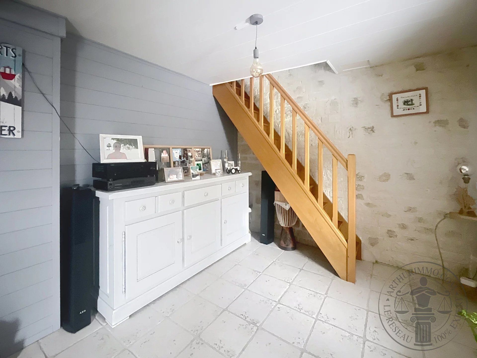 Elle se compose au rez-de-chaussée d’une cuisine équipée et d’un séjour agrémenté d’un poêle à granulés offrant confort et économies d’énergie.