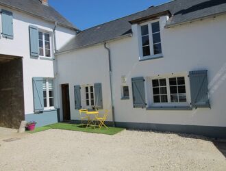 Maison offrant entrée, double séjour avec cheminée insert, cuisine équipée, chambre, salle de douche, toilettes.