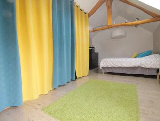 Une grange de 113 m au sol, un hangar de 200m², 2 abris voitures et un atelier complète ce bien atypique.