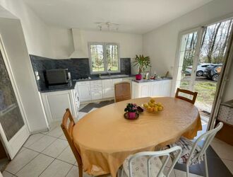 Sur un magnifique parc boisé de 5970 m² environ, cette jolie maison de plain-pied édifiée sur sous-sol total offre : entrée, vaste séjour lumineux avec cheminée insert, cuisine équipée ouverte sur salle à manger, 3 chambres, 2 salle d'eau, possibilité de faire une chambre supplémentaire. Au sous-sol : espace atelier, buanderie, cave et possibilité de stationner 3 véhicules.