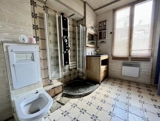 Maison ancienne offrant de beaux volumes comprenant : une vaste entrée, une cuisine, un cellier, un séjour double avec cheminée, une salle d'eau avec toilettes.