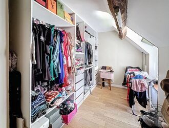 À l’étage, vous trouverez deux chambres, un dressing pouvant faire office de troisième chambre, ainsi qu’une salle d’eau équipée d’une douche à l’italienne et de toilettes.